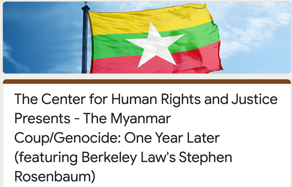 The Center for Human Rights and Justice at the University of Washington Presents – The Myanmar Coup/Genocide: One Year Later (featuring Berkeley Law’s Stephen Rosenbaum)