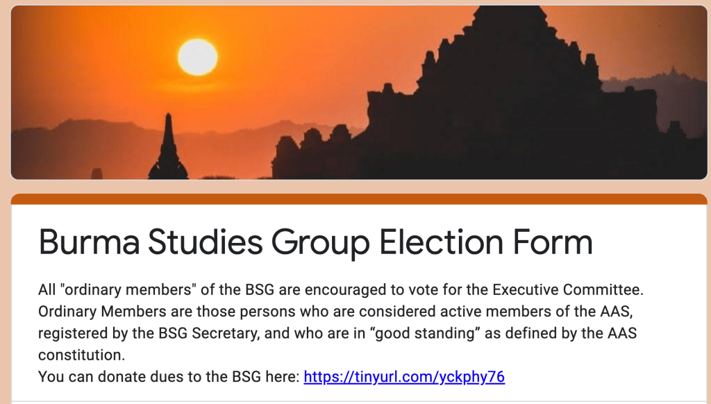 All “ordinary members”* of the BSG are encouraged to vote for the Executive Committee candidates. The open positions are for Co-Chair and Secretary. Cast your ballot here: https://forms.gle/uAsjN4rkhcfrc8qx6