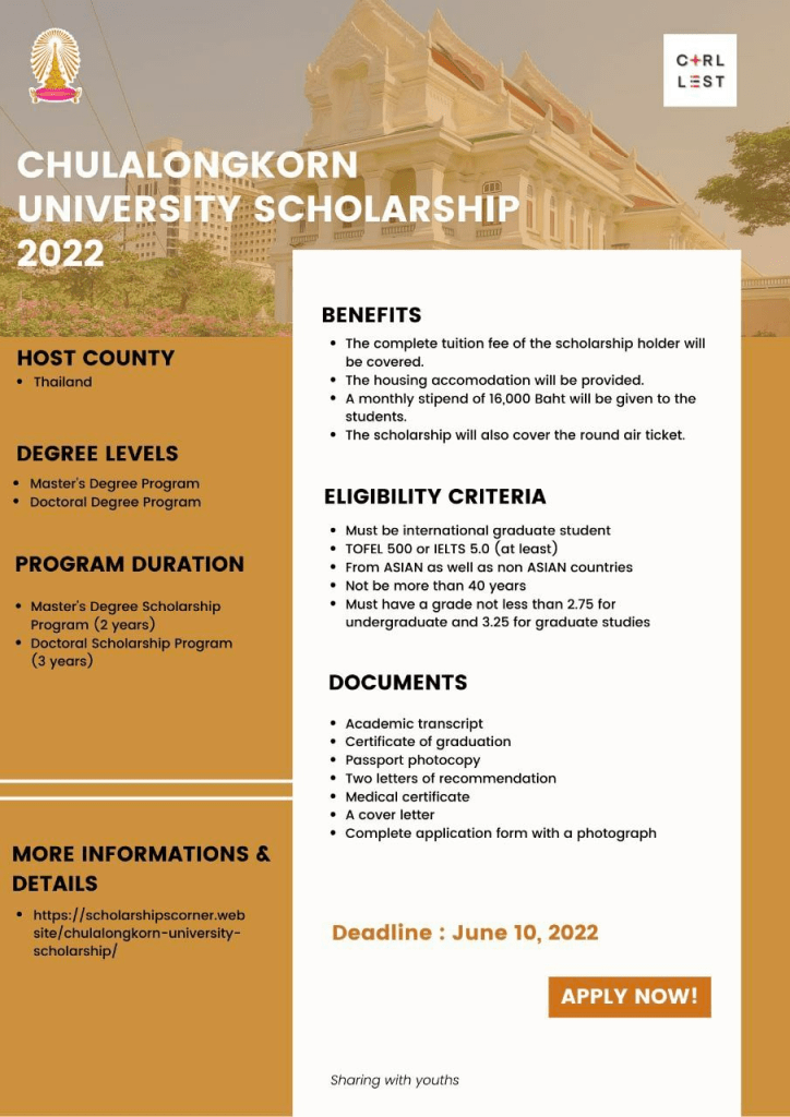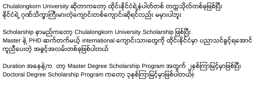 Opportunity: Chula U Scholarship Share this: Click to share on X (Opens in new window) X Click to share on Facebook (Opens in new window) Facebook Like Loading... Related