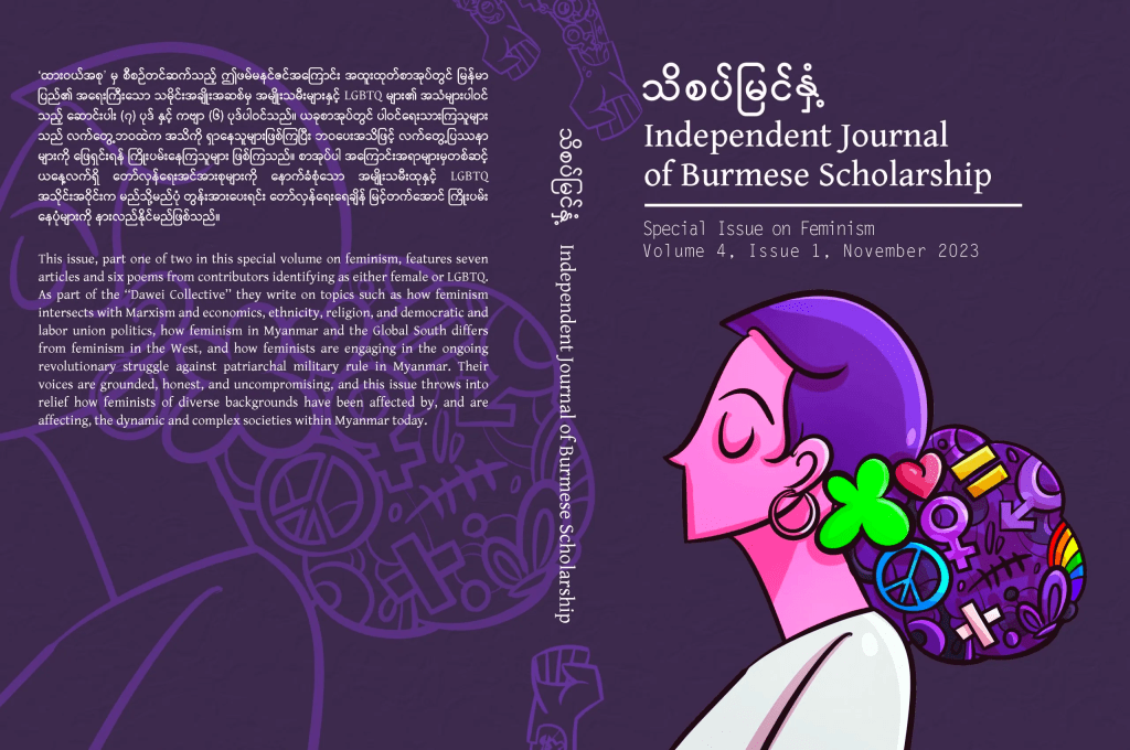 The latest issue of the Independent Journal of Burmese Scholarship has been released. It is issue one of a two-part special volume on feminism, with issue two to be released in 2024. It features two introductory articles, and seven articles and six poems from contributors identifying as either female or LGBTQ. As part of the “Dawei Collective” they write on topics such as how feminism intersects with Marxism and economics, ethnicity, religion, and democratic and labor union politics, how feminism in Myanmar and the Global South differs from feminism in the West, and how feminists are engaging in the ongoing revolutionary struggle against patriarchal military rule in Myanmar. Their voices are grounded, honest, and uncompromising, and this special issue throws into relief how feminists of diverse backgrounds have been affected by, and are affecting, the dynamic and complex societies within Myanmar today.