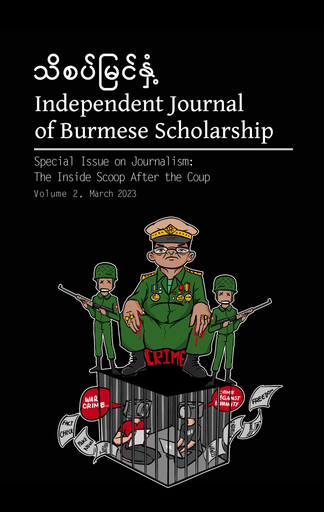 March 2023. Special Issue on “Journalism: The Inside Scoop After the Coup” [vol 2, 2023] with contributors: Thant Sin, Myo Thawdar, Lisa Brooten and Jane Madlyn McElhone, Kyaw Swar, Hsu Htet, Kay Mastenbroek, Shwe Yee Oo, Danny Fenster