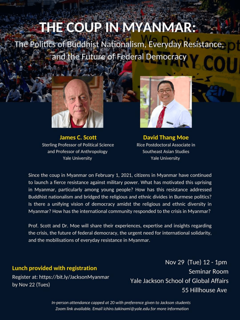 Abstract: Since the 2021 military coup in Myanmar, civil war has engulfed the country on an unprecedented scale. People’s Defence Forces (PDFs) have taken up arms across the Southeast Asian country in order to defend their communities from a murderous military and bring down the junta once and for all. That said, some parts of Myanmar have seen more intense fighting than others. And the dynamics of conflict between the military regime and anti-junta forces as well as violence against civilians are pronouncedly different from place to place. How can we best make sense of these variations? And why are they important? To understand Myanmar’s uneven geographies of conflict this lecture explores how the geographies of post-coup revolution interact with the geographies of preceding civil war between Ethnic Armed Organisations (EAOs) and the military. Specifically, it focuses on the multifaceted relations between EAOs and PDFs to explain diverging dynamics in Myanmar’s civil war. This is important for understanding the determinants of fragmentation and cohesion of Myanmar’s armed resistance, something that seems key to the wider success of Myanmar’s revolution.